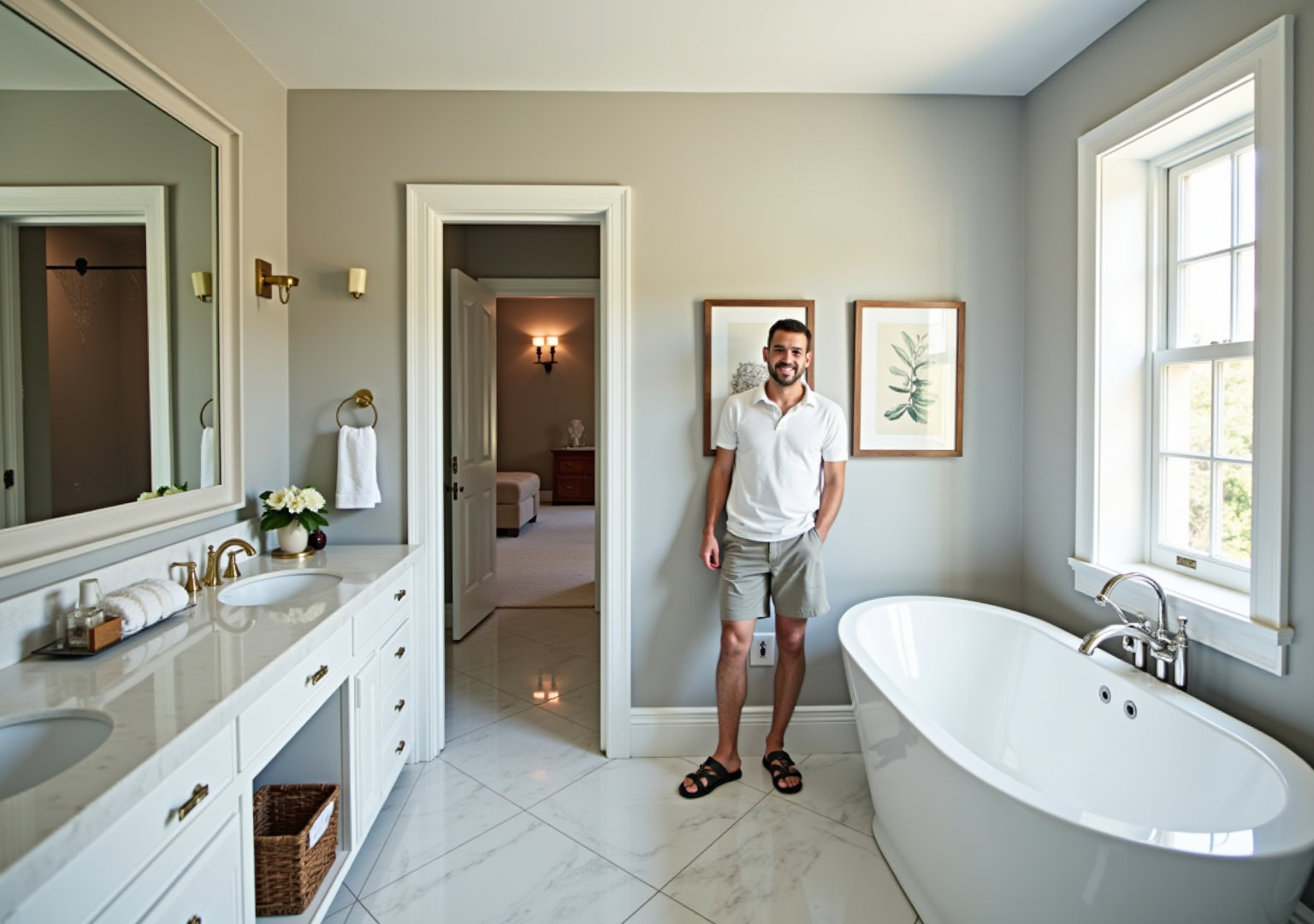 Timeless Fixtures with Modern Features: Freestanding soaking tubs, polished chrome hardware, and wall-mounted vanities blend Old World charm with smart storage and water-efficient engineering.