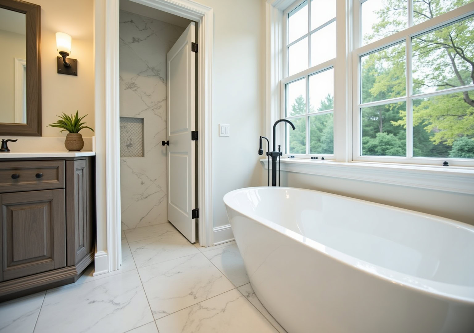 Natural materials: Marble, quartz, and stone bring a timeless, organic quality to renovated bathrooms. Paired with matte black, brass, or brushed nickel fixtures, these materials create inviting, sophisticated spaces.
